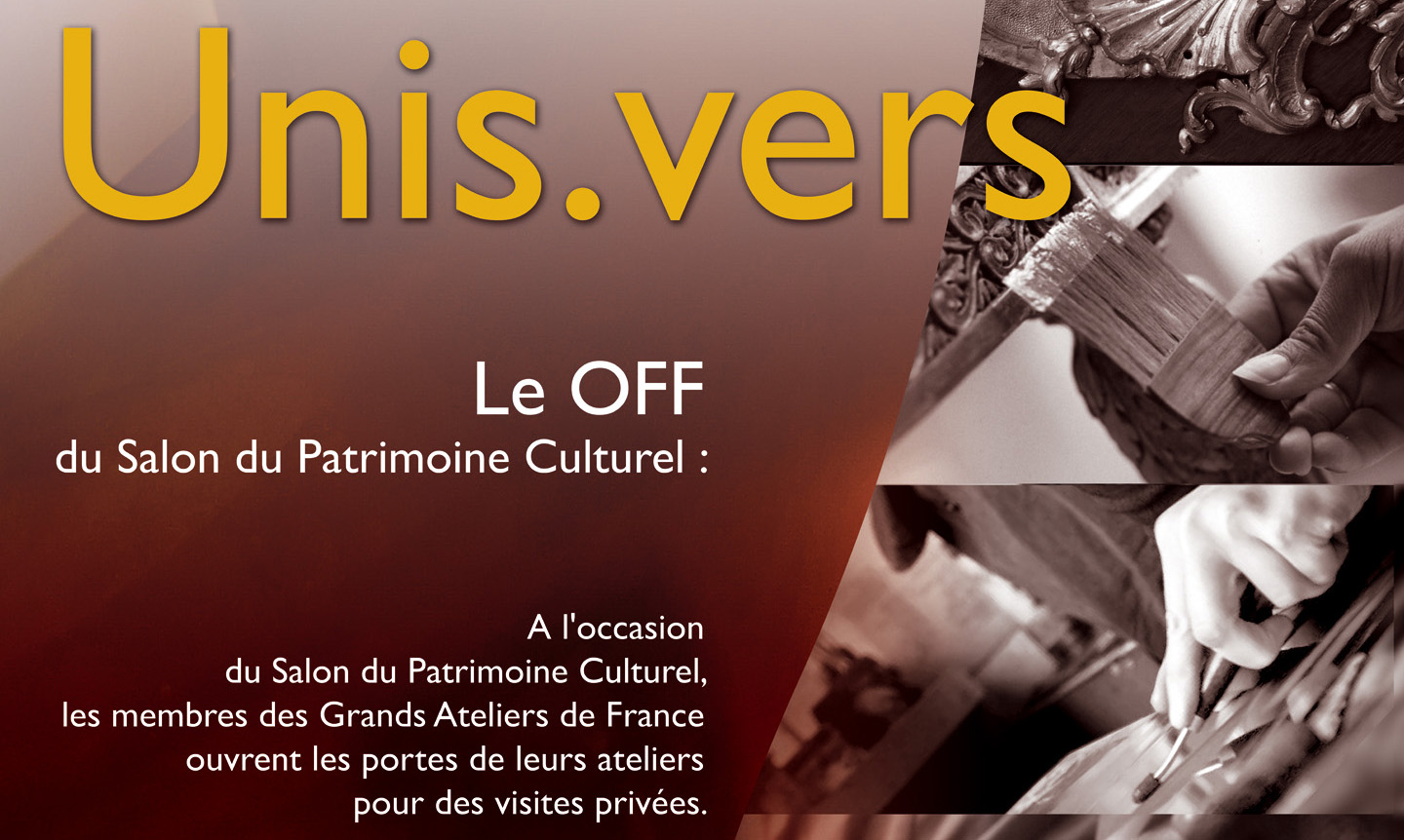 « Unis.vers, le OFF du salon du patrimoine », Carrousel du Louvre. Rencontres à l’œuvre, les Grands Ateliers au Carrousel du Louvre.